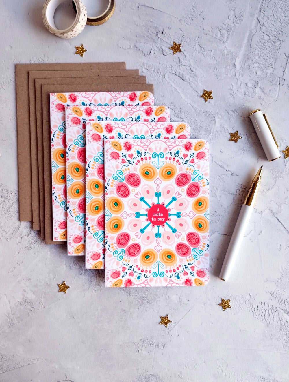Bring the joy of summer to your handwritten notes with this vibrant pack of 4 Summa Burst note cards. Inspired by the warmth, colour, and energy of the season, each card features a colourful pattern to brighten someone’s day. Whether you're saying thank you, sending love, or simply keeping in touch, these cards are perfect for your messages.