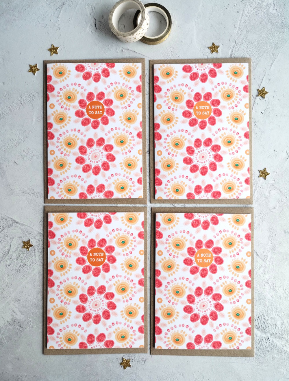 Bring the joy of summer to your handwritten notes with this pack of 4 Summa Carnival patterned note cards. Inspired by the warmth, colour, and energy of the season, each card features a colourful pattern to brighten someone’s day. Whether you're saying thank you, sending love, or simply keeping in touch, these cards are perfect for your messages.