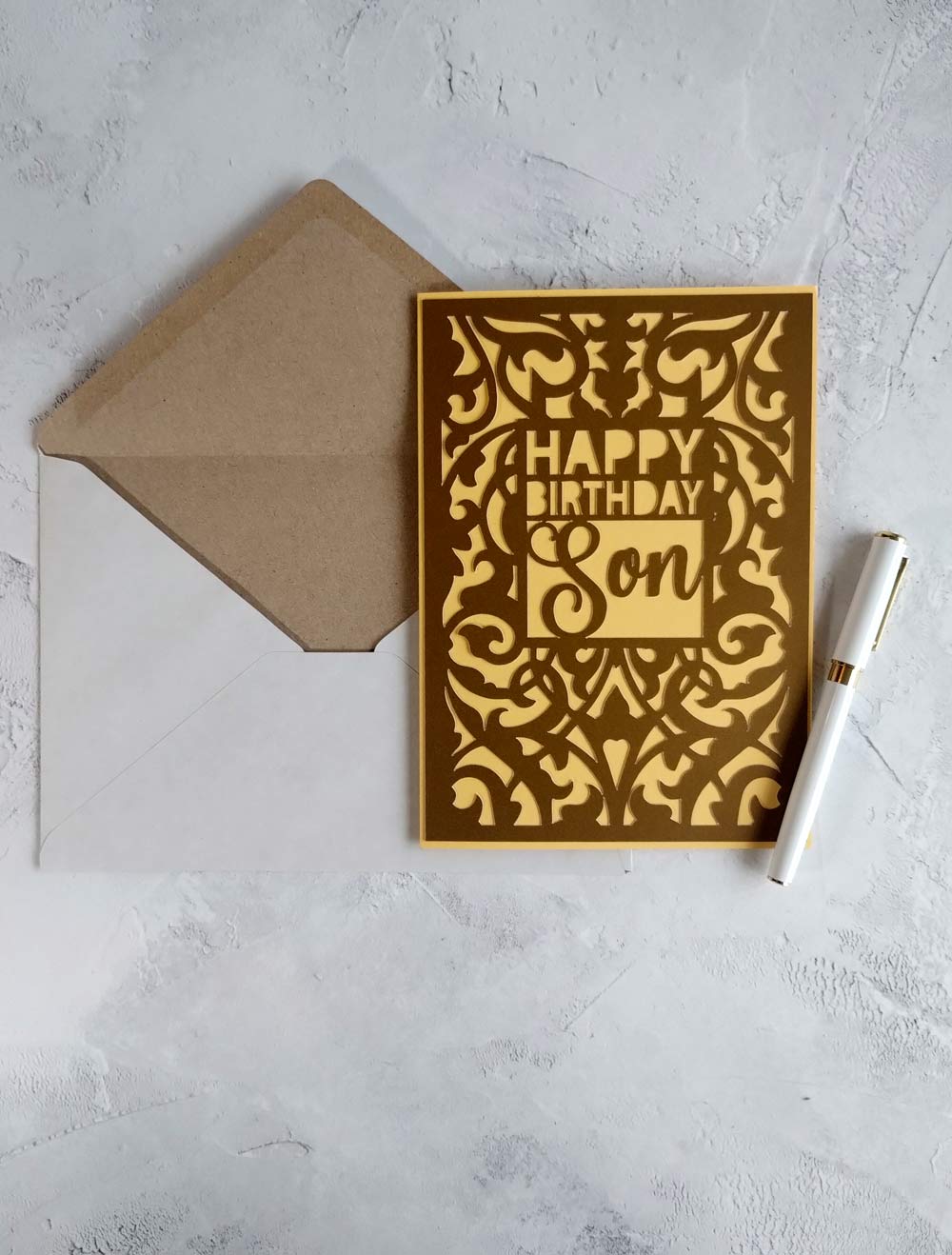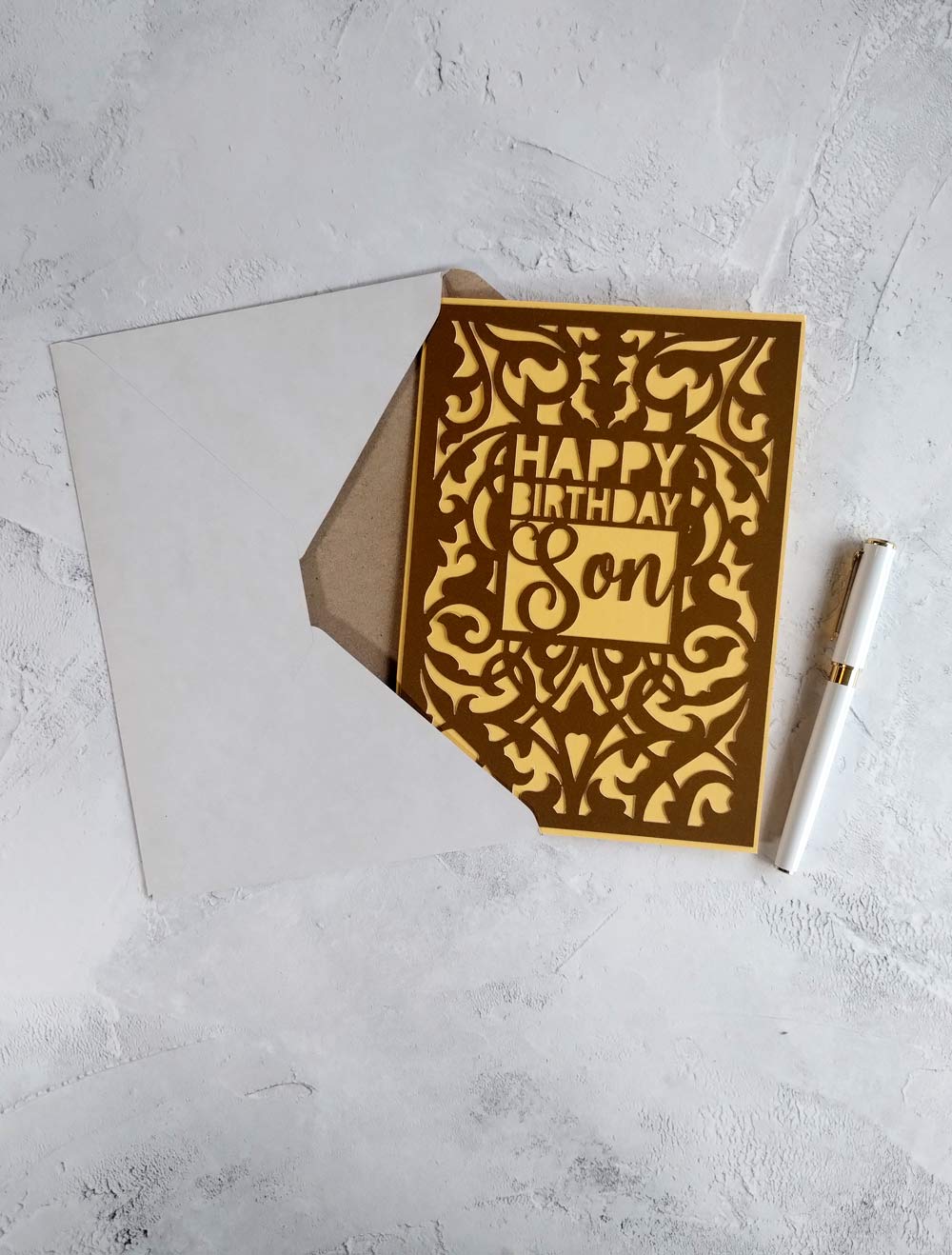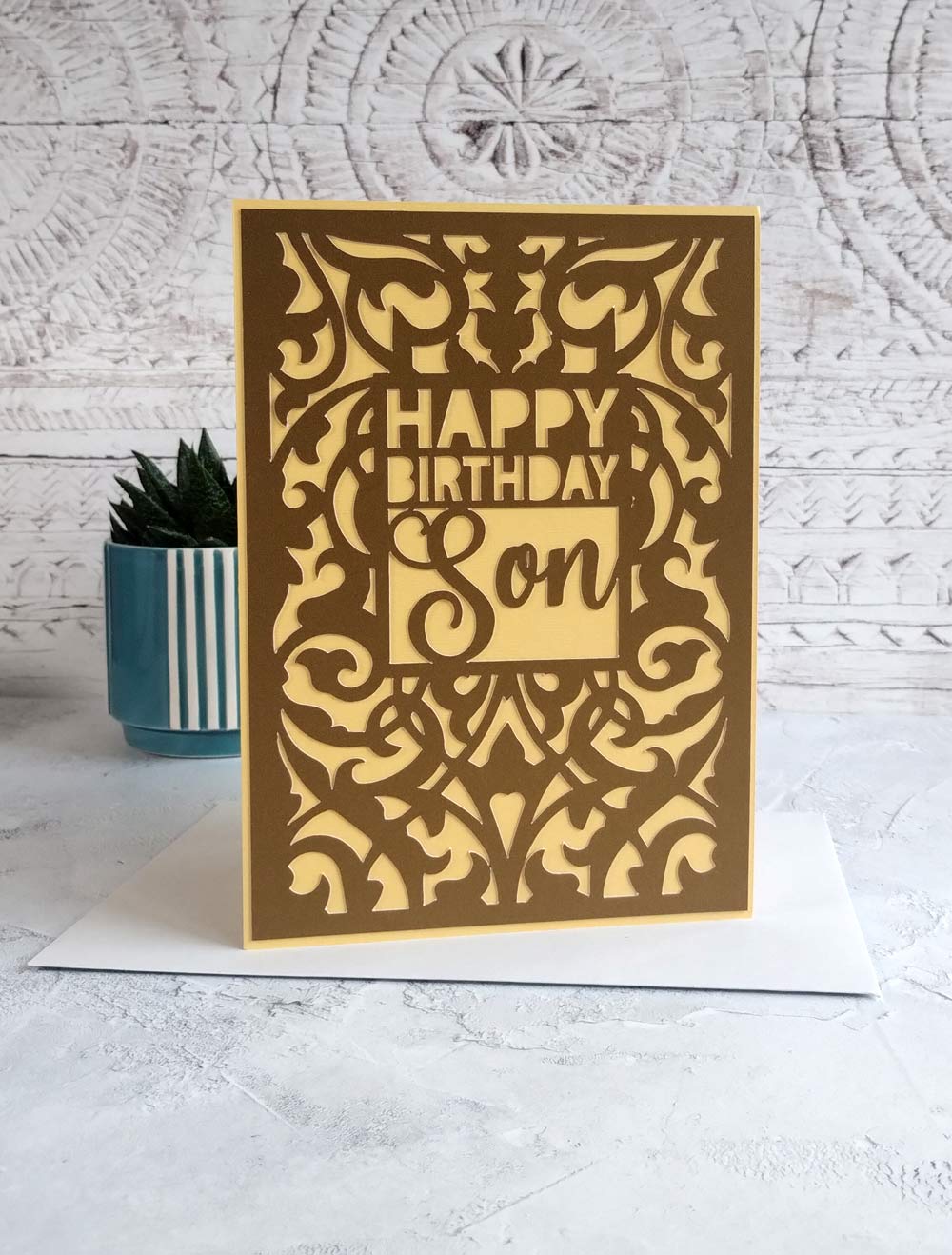 Add an extra touch to your Son's birthday card with this A5 layered card.